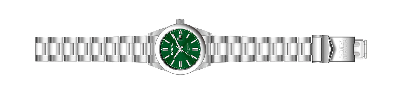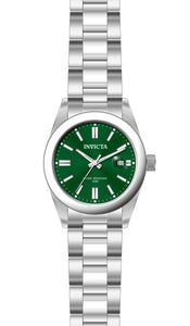 INVICTA Pro Diver Lady 38mm Stainless Steel Steel Green dial PC32 Quartz , Band Material: Stainless Steel, Band Tone: Steel, Band Size [mm]: 20, Band Length [mm]: 205, Buckle Type: Fold over , Crown Type : Push, Case Material : Stainless Steel, Case Tone : Steel, Case Size (mm) : 38, Case Back : Solid, Material of Hands : Metal, Color of Hands : Silver,Luminous, Crystal Type : Mineral, Bezel Material : Stainless Steel, Dial Material : Metal, Dial Color : Green, Dial Pattern : Sun-ray Finish .Purchasing these parts and having a non-authorized repair center open your watch voids all manufacturing warranties. Invicta cannot guarantee the quality standards of an altered timepiece, the standard 3-year limited warranty on Invicta timepieces shall be invalid if the timepiece is serviced at any time by an unauthorized repair center. This includes battery replacements, which must be done at an Invicta authorized repair center in order to maintain the eligibility of the warranty. Please follow the link below to learn more about Invicta's warranty.https://cdn.invictawatch.com/www/files/invicta-warranty-2018.pdf