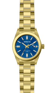 INVICTA Pro Diver Lady 38mm Stainless Steel Gold Blue dial PC32 Quartz , Band Material: Stainless Steel, Band Tone: Gold, Band Size [mm]: 20, Band Length [mm]: 205, Buckle Type: Fold over , Crown Type : Push, Case Material : Stainless Steel, Case Tone : Gold, Case Size (mm) : 38, Case Back : Solid, Material of Hands : Metal, Color of Hands : Gold,Luminous, Crystal Type : Mineral, Bezel Material : Stainless Steel, Dial Material : Metal, Dial Color : Blue, Dial Pattern : Sun-ray Finish .Purchasing these parts and having a non-authorized repair center open your watch voids all manufacturing warranties. Invicta cannot guarantee the quality standards of an altered timepiece, the standard 3-year limited warranty on Invicta timepieces shall be invalid if the timepiece is serviced at any time by an unauthorized repair center. This includes battery replacements, which must be done at an Invicta authorized repair center in order to maintain the eligibility of the warranty. Please follow the link below to learn more about Invicta's warranty.https://cdn.invictawatch.com/www/files/invicta-warranty-2018.pdf