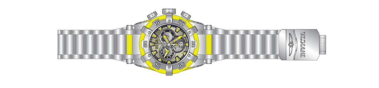 INVICTA Reserve Men 53mm Stainless Steel + Luminous Yellow + Steel Black+Silver+Yellow dial 5050.C Quartz , Band Material: Stainless Steel,Luminous tubes, Band Tone: Steel,Yellow, Band Size [mm]: 35, Band Length [mm]: 230, Buckle Type: Fold over safety , Crown Type : Screw Down, Case Material : Stainless Steel,Luminous, Case Tone : Yellow,Steel, Case Size (mm) : 53, Case Back : Solid, Material of Hands : Metal, Color of Hands : Silver,Luminous, Crystal Type : Flame Fusion, Bezel Material : Stainless Steel,Luminous, Dial Material : Metal, Dial Color : Black,Silver,Yellow .Purchasing these parts and having a non-authorized repair center open your watch voids all manufacturing warranties. Invicta cannot guarantee the quality standards of an altered timepiece, the standard 3-year limited warranty on Invicta timepieces shall be invalid if the timepiece is serviced at any time by an unauthorized repair center. This includes battery replacements, which must be done at an Invicta authorized repair center in order to maintain the eligibility of the warranty. Please follow the link below to learn more about Invicta's warranty.https://cdn.invictawatch.com/www/files/invicta-warranty-2018.pdf