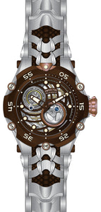 INVICTA Reserve Men 53.60mm Stainless Steel Rose Gold + Brown + Steel Silver+Brown+Rose Gold dial LG0801B Automatic , Band Material: Stainless Steel,Silicone, Band Tone: Steel,Brown, Band Size [mm]: 32, Band Length [mm]: 210, Buckle Type: Fold over safety , Crown Type : Screw Down, Case Material : Stainless Steel, Case Tone : Rose Gold,Brown,Steel, Case Size (mm) : 53.6, Case Back : Exhibition, Material of Hands : Metal, Color of Hands : Brown,Luminous, Crystal Type : Flame Fusion, Bezel Material : Stainless Steel, Dial Material : Metal,Skeleton, Dial Color : Silver,Brown,Rose Gold .Purchasing these parts and having a non-authorized repair center open your watch voids all manufacturing warranties. Invicta cannot guarantee the quality standards of an altered timepiece, the standard 3-year limited warranty on Invicta timepieces shall be invalid if the timepiece is serviced at any time by an unauthorized repair center. This includes battery replacements, which must be done at an Invicta authorized repair center in order to maintain the eligibility of the warranty. Please follow the link below to learn more about Invicta's warranty.https://cdn.invictawatch.com/www/files/invicta-warranty-2018.pdf