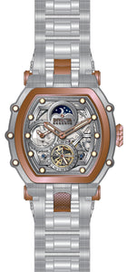 Band Material: Stainless Steel, Band Tone: Steel,Rose Gold, Band Width: 30.6MM, Band Length: 210MM, Buckle Type: Fold over safety, Clasp Type: Safety,Deployment, Crown Type : Screw Down, Case Material : Stainless Steel, Case Tone : Rose Gold,Steel, Case Size [mm] : 52.5, Case Back : Solid, Material of Hands : Metal, Color of Hands : Rose Gold,Luminous, Crystal Type : Flame Fusion, Bezel Material : Stainless Steel, Dial Material : Metal,Skeleton, Dial Color : Silver, Dial Pattern : None .Purchasing these parts and having a non-authorized repair center open your watch voids all manufacturing warranties. Invicta cannot guarantee the quality standards of an altered timepiece, the standard 3-year limited warranty on Invicta timepieces shall be invalid if the timepiece is serviced at any time by an unauthorized repair center. This includes battery replacements, which must be done at an Invicta authorized repair center in order to maintain the eligibility of the warranty. Please follow the link below to learn more about Invicta's warranty.https://cdn.invictawatch.com/www/files/invicta-warranty-2018.pdf