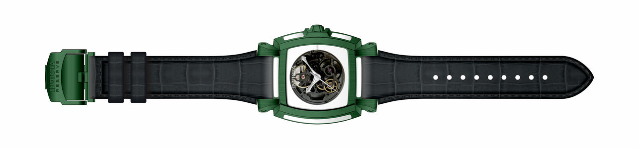 INVICTA Reserve Men 44mm Stainless Steel Green Transparent dial SW200 Skeleton Automatic , Band Material: Leather, Band Tone: Black, Band Size [mm]: 22, Band Length [mm]: 210, Buckle Type: Butterfly , Crown Type : Push, Case Material : Stainless Steel, Case Tone : Green, Case Size (mm) : 44, Case Back : Exhibition, Material of Hands : Metal, Color of Hands : Silver,Luminous, Crystal Type : Sapphire, Bezel Material : Stainless Steel, Dial Material : Plastic, Dial Color : Transparent .Purchasing these parts and having a non-authorized repair center open your watch voids all manufacturing warranties. Invicta cannot guarantee the quality standards of an altered timepiece, the standard 3-year limited warranty on Invicta timepieces shall be invalid if the timepiece is serviced at any time by an unauthorized repair center. This includes battery replacements, which must be done at an Invicta authorized repair center in order to maintain the eligibility of the warranty. Please follow the link below to learn more about Invicta's warranty.https://cdn.invictawatch.com/www/files/invicta-warranty-2018.pdf