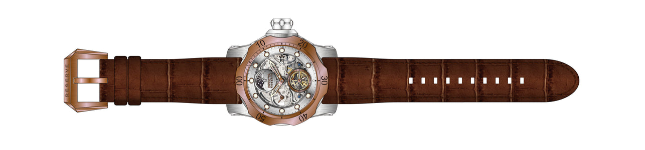 INVICTA Reserve Men 53.70mm Stainless Steel Rose Gold + Steel Silver+Rose Gold dial Z2031 Automatic , Band Material: Leather, Band Tone: Brown, Band Size [mm]: 26, Band Length [mm]: 230, Buckle Type: Buckle , Crown Type : Screw Down, Case Material : Stainless Steel, Case Tone : Rose Gold,Steel, Case Size (mm) : 53.7, Case Back : Exhibition, Material of Hands : Metal, Color of Hands : Rose Gold,Luminous, Crystal Type : Flame Fusion, Bezel Material : Stainless Steel, Dial Material : Metal,Skeleton, Dial Color : Silver,Rose Gold, Dial Pattern : None .Purchasing these parts and having a non-authorized repair center open your watch voids all manufacturing warranties. Invicta cannot guarantee the quality standards of an altered timepiece, the standard 3-year limited warranty on Invicta timepieces shall be invalid if the timepiece is serviced at any time by an unauthorized repair center. This includes battery replacements, which must be done at an Invicta authorized repair center in order to maintain the eligibility of the warranty. Please follow the link below to learn more about Invicta's warranty.https://cdn.invictawatch.com/www/files/invicta-warranty-2018.pdf