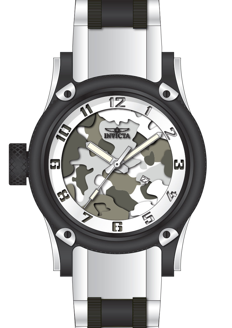 Band Material: Stainless Steel,Silicone,Polyurethane, Band Tone: Black,White, Band Width: 26MM, Band Length: 220MM, Crown Type: Push, Case Material: Stainless Steel,Polyurethane, Case Tone: Black,White, Case Size [mm]: 52.0, Case Back: Solid, Material of Hands: Metal, Color of Hands: Silver,Luminous, Crystal Type: Mineral, Bezel Material: Stainless Steel,Polyurethane, Dial Material: Metal, Dial Color: White,Grey,Camouflage .Purchasing these parts and having a non-authorized repair center open your watch voids all manufacturing warranties. Invicta cannot guarantee the quality standards of an altered timepiece, the standard 3-year limited warranty on Invicta timepieces shall be invalid if the timepiece is serviced at any time by an unauthorized repair center. This includes battery replacements, which must be done at an Invicta authorized repair center in order to maintain the eligibility of the warranty. Please follow the link below to learn more about Invicta's warranty.https://cdn.invictawatch.com/www/files/invicta-warranty-2018.pdf