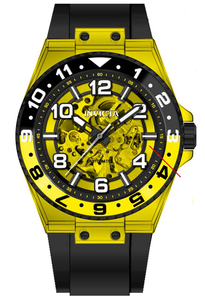 Band Material: Stainless Steel, Band Tone: Black, Band Width: 30MM, Band Length: 210MM, Buckle Type: Buckle, Crown Type : Push, Case Material : Polyurethane, Case Tone : Yellow, Case Size [mm] : 48, Case Back : Exhibition, Material of Hands : Metal, Color of Hands : Black,White, Crystal Type : Flame Fusion, Bezel Material : Stainless Steel, Dial Material : Stainless Steel, Dial Color : Yellow, Dial Pattern : Sun-ray Finish .Purchasing these parts and having a non-authorized repair center open your watch voids all manufacturing warranties. Invicta cannot guarantee the quality standards of an altered timepiece, the standard 3-year limited warranty on Invicta timepieces shall be invalid if the timepiece is serviced at any time by an unauthorized repair center. This includes battery replacements, which must be done at an Invicta authorized repair center in order to maintain the eligibility of the warranty. Please follow the link below to learn more about Invicta's warranty.https://cdn.invictawatch.com/www/files/invicta-warranty-2018.pdf