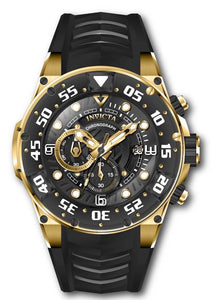 Band Material: Silicone, Band Tone: Black, Band Width: 32MM, Band Length: 210MM, Crown Type: Push, Case Material: Stainless Steel, Case Tone: Gold, Case Size [mm]: 52, Case Back: Solid, Material of Hands: Metal, Color of Hands: Black,Gold, Crystal Type: Flame Fusion, Bezel Material: Stainless Steel, Dial Material: Metal, Dial Color: Black .Purchasing these parts and having a non-authorized repair center open your watch voids all manufacturing warranties. Invicta cannot guarantee the quality standards of an altered timepiece, the standard 3-year limited warranty on Invicta timepieces shall be invalid if the timepiece is serviced at any time by an unauthorized repair center. This includes battery replacements, which must be done at an Invicta authorized repair center in order to maintain the eligibility of the warranty. Please follow the link below to learn more about Invicta's warranty.https://cdn.invictawatch.com/www/files/invicta-warranty-2018.pdf