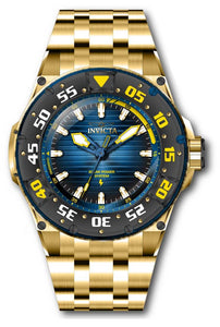 Band Material: Stainless Steel, Band Tone: Gold, Band Width: 32MM, Band Length: 210MM, Crown Type: Push, Case Material: Stainless Steel, Case Tone: Gold, Case Size [mm]: 52, Case Back: Solid, Material of Hands: Metal, Color of Hands: Blue,Gold, Crystal Type: Flame Fusion, Bezel Material: Stainless Steel, Dial Material: Metal, Dial Color: Blue .Purchasing these parts and having a non-authorized repair center open your watch voids all manufacturing warranties. Invicta cannot guarantee the quality standards of an altered timepiece, the standard 3-year limited warranty on Invicta timepieces shall be invalid if the timepiece is serviced at any time by an unauthorized repair center. This includes battery replacements, which must be done at an Invicta authorized repair center in order to maintain the eligibility of the warranty. Please follow the link below to learn more about Invicta's warranty.https://cdn.invictawatch.com/www/files/invicta-warranty-2018.pdf