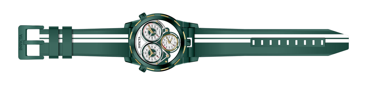 Band Material: Silicone, Band Tone: White,Green, Band Width: 24MM, Band Length: 220MM, Crown Type: Push, Case Material: Stainless Steel, Case Tone: Green, Case Size [mm]: 47, Case Back: Exhibition, Material of Hands: Metal, Color of Hands: Gold,Luminous, Crystal Type: Flame Fusion, Bezel Material: Stainless Steel, Dial Material: Metal, Dial Color: Silver,Green, Dial Pattern: Double Layered Design .Purchasing these parts and having a non-authorized repair center open your watch voids all manufacturing warranties. Invicta cannot guarantee the quality standards of an altered timepiece, the standard 3-year limited warranty on Invicta timepieces shall be invalid if the timepiece is serviced at any time by an unauthorized repair center. This includes battery replacements, which must be done at an Invicta authorized repair center in order to maintain the eligibility of the warranty. Please follow the link below to learn more about Invicta's warranty.https://cdn.invictawatch.com/www/files/invicta-warranty-2018.pdf