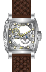 Band Material: Leather, Band Tone: Brown, Band Width: 26MM, Band Length: 210MM, Crown Type: Push, Case Material: Stainless Steel, Case Tone: Steel, Case Size [mm]: 48, Case Back: Exhibition, Material of Hands: Metal, Color of Hands: Gold,Luminous, Crystal Type: Sapphire, Bezel Material: Stainless Steel, Dial Material: Metal,Skeleton, Dial Color: Silver, Dial Pattern: Sun-ray Finish .Purchasing these parts and having a non-authorized repair center open your watch voids all manufacturing warranties. Invicta cannot guarantee the quality standards of an altered timepiece, the standard 3-year limited warranty on Invicta timepieces shall be invalid if the timepiece is serviced at any time by an unauthorized repair center. This includes battery replacements, which must be done at an Invicta authorized repair center in order to maintain the eligibility of the warranty. Please follow the link below to learn more about Invicta's warranty.https://cdn.invictawatch.com/www/files/invicta-warranty-2018.pdf