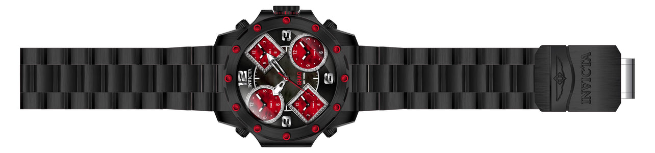 Band Material: Stainless Steel, Band Tone: Black, Band Width: 30MM, Band Length: 190MM, Crown Type: Push, Push, Case Material: Stainless Steel, Case Tone: Black, Case Size [mm]: 58, Color of Hands: Silver, Black, Crystal Type: Flame Fusion, Bezel Material: Stainless Steel, Dial Material: Mother of Pearl, Metal, Dial Color: Red, Black .Purchasing these parts and having a non-authorized repair center open your watch voids all manufacturing warranties. Invicta cannot guarantee the quality standards of an altered timepiece, the standard 3-year limited warranty on Invicta timepieces shall be invalid if the timepiece is serviced at any time by an unauthorized repair center. This includes battery replacements, which must be done at an Invicta authorized repair center in order to maintain the eligibility of the warranty. Please follow the link below to learn more about Invicta's warranty.https://cdn.invictawatch.com/www/files/invicta-warranty-2018.pdf
