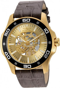 Individual Spare PARTS For Men Invicta Specialty 17262, Band Material Leather, Band Color Grey, Band Width 24 MM, Band Length 225 MM, Buckle Type Regular, Clasp Type Regular, Crown Type Push, Case Material Stainless Steel, Case Tone Gold, Case Size (mm) 45, Case Back Exhibition, Material of Hands Metal, Color of Hands Gold, Crystal Type Flame Fusion, Bezel Material Stainless Steel, Dial Material Metal, Dial Color Gold, Dial Pattern None