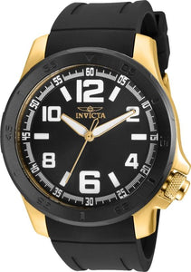 Individual Spare PARTS For Invicta Specialty 30704, Band Material Silicone, Band Tone Black, Band Width 24MM, Band Length 210MM, Buckle Type Buckle, Clasp Type Regular, Crown Type Push, Case Material Stainless Steel, Case Tone Gold, Case Size (mm) 48, Case Back Solid, Material of Hands Metal, Color of Hands Gold, Crystal Type Flame Fusion, Bezel Material Stainless Steel, Dial Material Metal, Dial Color Black, Dial Pattern None