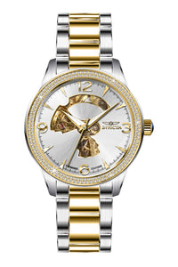INVICTA Specialty Lady 38mm Stainless Steel Steel Silver dial JSD-006SJ Mechanical , Band Material: Stainless Steel, Band Tone: Steel,Gold, Band Size [mm]: 18, Band Length [mm]: 190, Buckle Type: Fold over safety , Crown Type : Push, Case Material : Stainless Steel, Case Tone : Steel, Case Size (mm) : 38, Case Back : Exhibition, Material of Hands : Metal, Color of Hands : Gold, Crystal Type : Flame Fusion, Bezel Material : Stainless Steel,Diamond, Dial Material : Metal, Dial Color : Silver .Purchasing these parts and having a non-authorized repair center open your watch voids all manufacturing warranties. Invicta cannot guarantee the quality standards of an altered timepiece, the standard 3-year limited warranty on Invicta timepieces shall be invalid if the timepiece is serviced at any time by an unauthorized repair center. This includes battery replacements, which must be done at an Invicta authorized repair center in order to maintain the eligibility of the warranty. Please follow the link below to learn more about Invicta's warranty.https://cdn.invictawatch.com/www/files/invicta-warranty-2018.pdf