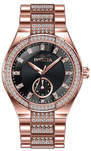 INVICTA Specialty Lady 38mm Stainless Steel Rose Gold Black dial VH60 Quartz , Band Material: Stainless Steel,Crystal, Band Tone: Rose Gold, Band Size [mm]: 22, Band Length [mm]: 190, Buckle Type: Fold over safety , Crown Type : Push, Case Material : Stainless Steel, Case Tone : Rose Gold, Case Size (mm) : 38, Case Back : Solid, Material of Hands : Metal, Color of Hands : Rose Gold, Crystal Type : Flame Fusion, Bezel Material : Stainless Steel,Crystal, Dial Material : Metal, Dial Color : Black, Dial Pattern : Sun-ray Finish .Purchasing these parts and having a non-authorized repair center open your watch voids all manufacturing warranties. Invicta cannot guarantee the quality standards of an altered timepiece, the standard 3-year limited warranty on Invicta timepieces shall be invalid if the timepiece is serviced at any time by an unauthorized repair center. This includes battery replacements, which must be done at an Invicta authorized repair center in order to maintain the eligibility of the warranty. Please follow the link below to learn more about Invicta's warranty.https://cdn.invictawatch.com/www/files/invicta-warranty-2018.pdf