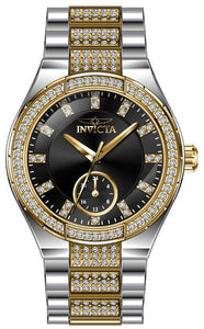 INVICTA Specialty Lady 38mm Stainless Steel Steel Black dial VH60 Quartz , Band Material: Stainless Steel,Crystal, Band Tone: Steel,Gold, Band Size [mm]: 22, Band Length [mm]: 190, Buckle Type: Fold over safety , Crown Type : Push, Case Material : Stainless Steel, Case Tone : Steel, Case Size (mm) : 38, Case Back : Solid, Material of Hands : Metal, Color of Hands : Gold, Crystal Type : Flame Fusion, Bezel Material : Stainless Steel,Crystal, Dial Material : Metal, Dial Color : Black, Dial Pattern : Sun-ray Finish .Purchasing these parts and having a non-authorized repair center open your watch voids all manufacturing warranties. Invicta cannot guarantee the quality standards of an altered timepiece, the standard 3-year limited warranty on Invicta timepieces shall be invalid if the timepiece is serviced at any time by an unauthorized repair center. This includes battery replacements, which must be done at an Invicta authorized repair center in order to maintain the eligibility of the warranty. Please follow the link below to learn more about Invicta's warranty.https://cdn.invictawatch.com/www/files/invicta-warranty-2018.pdf