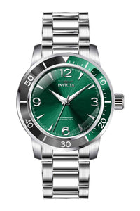 INVICTA Specialty Men 45mm Stainless Steel Silver Green dial PC21 Quartz , Band Material: Stainless Steel, Band Tone: Steel, Band Size [mm]: 22, Band Length [mm]: 190, Buckle Type: Fold over safety , Crown Type : Push, Case Material : Stainless Steel, Case Tone : Silver, Case Size (mm) : 45, Case Back : Solid, Material of Hands : Metal, Color of Hands : White,Silver, Crystal Type : Flame Fusion, Bezel Material : Stainless Steel, Dial Material : Metal, Dial Color : Green .Purchasing these parts and having a non-authorized repair center open your watch voids all manufacturing warranties. Invicta cannot guarantee the quality standards of an altered timepiece, the standard 3-year limited warranty on Invicta timepieces shall be invalid if the timepiece is serviced at any time by an unauthorized repair center. This includes battery replacements, which must be done at an Invicta authorized repair center in order to maintain the eligibility of the warranty. Please follow the link below to learn more about Invicta's warranty.https://cdn.invictawatch.com/www/files/invicta-warranty-2018.pdf