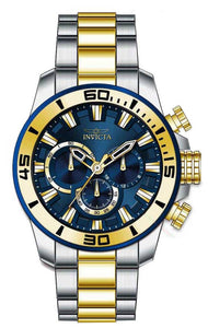 Band Material: Stainless Steel, Band Tone: Steel,Gold, Band Width: 24MM, Band Length: 185MM, Crown Type: Push, Case Material: Stainless Steel, Case Tone: Steel, Case Size [mm]: 48.5, Case Back: Solid, Material of Hands: Metal, Color of Hands: Gold, Crystal Type: Flame Fusion, Bezel Material: Stainless Steel, Dial Material: Metal, Dial Color: Blue, Dial Pattern: Sun-ray Finish .Purchasing these parts and having a non-authorized repair center open your watch voids all manufacturing warranties. Invicta cannot guarantee the quality standards of an altered timepiece, the standard 3-year limited warranty on Invicta timepieces shall be invalid if the timepiece is serviced at any time by an unauthorized repair center. This includes battery replacements, which must be done at an Invicta authorized repair center in order to maintain the eligibility of the warranty. Please follow the link below to learn more about Invicta's warranty.https://cdn.invictawatch.com/www/files/invicta-warranty-2018.pdf