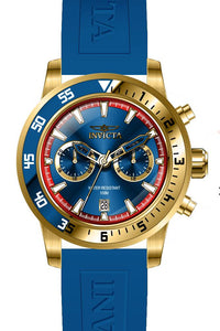 Band Material: Silicone, Band Tone: Blue, Band Width: 22MM, Band Length: 190MM, Crown Type: Push, Case Material: Stainless Steel, Case Tone: Gold, Case Size [mm]: 45, Case Back: Solid, Material of Hands: Metal, Color of Hands: Blue,Gold, Crystal Type: Flame Fusion, Bezel Material: Stainless Steel, Dial Material: Metal, Dial Color: Blue, Dial Pattern: Sun-ray Finish .Purchasing these parts and having a non-authorized repair center open your watch voids all manufacturing warranties. Invicta cannot guarantee the quality standards of an altered timepiece, the standard 3-year limited warranty on Invicta timepieces shall be invalid if the timepiece is serviced at any time by an unauthorized repair center. This includes battery replacements, which must be done at an Invicta authorized repair center in order to maintain the eligibility of the warranty. Please follow the link below to learn more about Invicta's warranty.https://cdn.invictawatch.com/www/files/invicta-warranty-2018.pdf