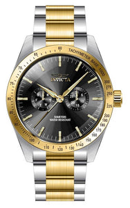 Band Material: Stainless Steel, Band Tone: Steel,Gold, Band Width: 22MM, Band Length: 190MM, Crown Type: Push, Case Material: Stainless Steel, Case Tone: Steel, Case Size [mm]: 44, Case Back: Solid, Material of Hands: Metal, Color of Hands: Gold, Crystal Type: Flame Fusion, Bezel Material: Stainless Steel, Dial Material: Metal, Dial Color: Black .Purchasing these parts and having a non-authorized repair center open your watch voids all manufacturing warranties. Invicta cannot guarantee the quality standards of an altered timepiece, the standard 3-year limited warranty on Invicta timepieces shall be invalid if the timepiece is serviced at any time by an unauthorized repair center. This includes battery replacements, which must be done at an Invicta authorized repair center in order to maintain the eligibility of the warranty. Please follow the link below to learn more about Invicta's warranty.https://cdn.invictawatch.com/www/files/invicta-warranty-2018.pdf