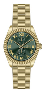 Band Material: Stainless Steel, Band Tone: Gold, Band Width: 22MM, Band Length: 178MM, Crown Type: Push, Case Material: Stainless Steel, Case Tone: Gold, Case Size [mm]: 43, Crystal Type: Mineral, Dial Material: Brass, Dial Color: Green .Purchasing these parts and having a non-authorized repair center open your watch voids all manufacturing warranties. Invicta cannot guarantee the quality standards of an altered timepiece, the standard 3-year limited warranty on Invicta timepieces shall be invalid if the timepiece is serviced at any time by an unauthorized repair center. This includes battery replacements, which must be done at an Invicta authorized repair center in order to maintain the eligibility of the warranty. Please follow the link below to learn more about Invicta's warranty.https://cdn.invictawatch.com/www/files/invicta-warranty-2018.pdf