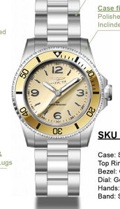 Band Material: Stainless Steel, Band Tone: Steel, Band Width: 20MM, Band Length: 205MM, Crown Type: Push, Case Material: Stainless Steel, Case Tone: Steel, Case Size [mm]: 40, Crystal Type: Mineral, Bezel Material: Stainless Steel, Dial Material: Brass, Dial Color: Champagne, Dial Pattern: Sun-ray Finish .Purchasing these parts and having a non-authorized repair center open your watch voids all manufacturing warranties. Invicta cannot guarantee the quality standards of an altered timepiece, the standard 3-year limited warranty on Invicta timepieces shall be invalid if the timepiece is serviced at any time by an unauthorized repair center. This includes battery replacements, which must be done at an Invicta authorized repair center in order to maintain the eligibility of the warranty. Please follow the link below to learn more about Invicta's warranty.https://cdn.invictawatch.com/www/files/invicta-warranty-2018.pdf