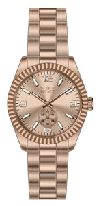 Band Material: Stainless Steel, Band Tone: Rose Gold, Band Width: 22MM, Band Length: 176MM, Crown Type: Push, Case Material: Stainless Steel, Case Tone: Rose Gold, Case Size [mm]: 43, Case Back: Solid, Material of Hands: Brass, Color of Hands: Rose Gold,Luminous, Crystal Type: Mineral, Bezel Material: Stainless Steel, Dial Material: Brass, Dial Color: Rose Gold, Dial Pattern: Sun-ray Finish .Purchasing these parts and having a non-authorized repair center open your watch voids all manufacturing warranties. Invicta cannot guarantee the quality standards of an altered timepiece, the standard 3-year limited warranty on Invicta timepieces shall be invalid if the timepiece is serviced at any time by an unauthorized repair center. This includes battery replacements, which must be done at an Invicta authorized repair center in order to maintain the eligibility of the warranty. Please follow the link below to learn more about Invicta's warranty.https://cdn.invictawatch.com/www/files/invicta-warranty-2018.pdf