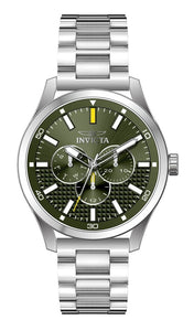 Band Material: Stainless Steel, Band Tone: Steel, Band Width: 22MM, Band Length: 174MM, Crown Type: Push, Case Material: Stainless Steel, Case Tone: Steel, Case Size [mm]: 46, Case Back: Solid, Material of Hands: Brass, Color of Hands: Silver,Yellow,Luminous, Crystal Type: Mineral, Bezel Material: None, Dial Material: Brass, Dial Color: Green, Dial Pattern: Sun-ray Finish .Purchasing these parts and having a non-authorized repair center open your watch voids all manufacturing warranties. Invicta cannot guarantee the quality standards of an altered timepiece, the standard 3-year limited warranty on Invicta timepieces shall be invalid if the timepiece is serviced at any time by an unauthorized repair center. This includes battery replacements, which must be done at an Invicta authorized repair center in order to maintain the eligibility of the warranty. Please follow the link below to learn more about Invicta's warranty.https://cdn.invictawatch.com/www/files/invicta-warranty-2018.pdf