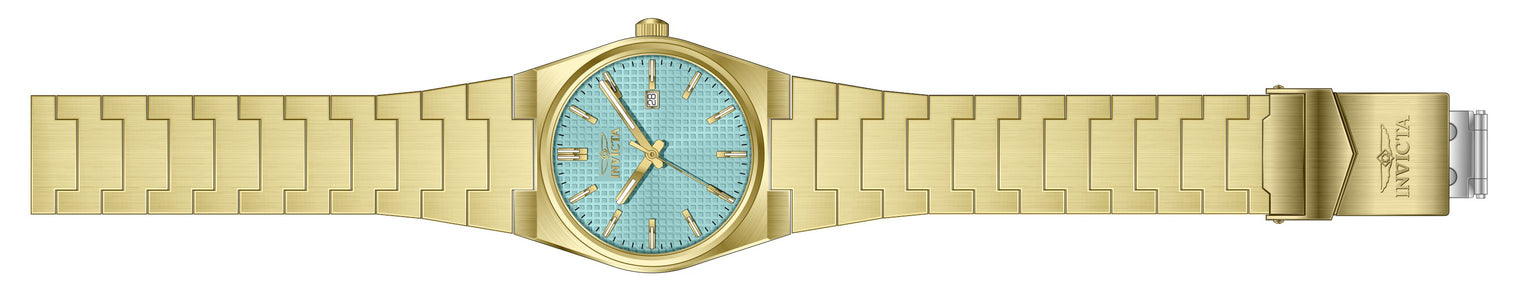 Band Material: Stainless Steel, Band Tone: Gold, Band Width: 27MM, Band Length: 185MM, Crown Type: Push, Case Material: Stainless Steel, Case Tone: Gold, Case Size [mm]: 40, Color of Hands: Luminous, Gold, Crystal Type: Mineral, Bezel Material: None, Dial Material: Brass, Dial Color: Light Blue .Purchasing these parts and having a non-authorized repair center open your watch voids all manufacturing warranties. Invicta cannot guarantee the quality standards of an altered timepiece, the standard 3-year limited warranty on Invicta timepieces shall be invalid if the timepiece is serviced at any time by an unauthorized repair center. This includes battery replacements, which must be done at an Invicta authorized repair center in order to maintain the eligibility of the warranty. Please follow the link below to learn more about Invicta's warranty.https://cdn.invictawatch.com/www/files/invicta-warranty-2018.pdf