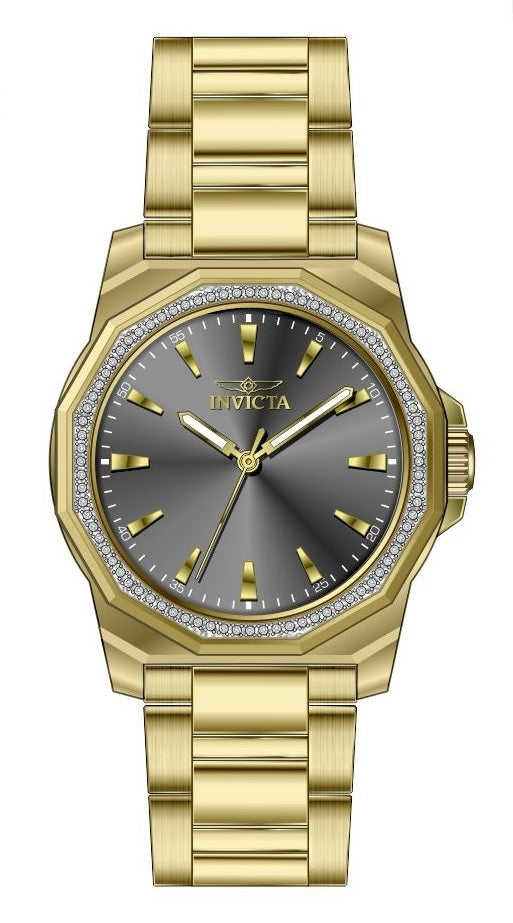 Band Material: Stainless Steel, Band Tone: Gold, Band Width: 18MM, Band Length: 170MM, Crown Type: Push, Case Material: Stainless Steel, Case Tone: Gold, Case Size [mm]: 34, Case Back: Solid, Material of Hands: Brass, Color of Hands: Gold,Luminous, Crystal Type: Mineral, Bezel Material: Crystal, Dial Material: Brass, Dial Color: Charcoal, Dial Pattern: Sun-ray Finish .Purchasing these parts and having a non-authorized repair center open your watch voids all manufacturing warranties. Invicta cannot guarantee the quality standards of an altered timepiece, the standard 3-year limited warranty on Invicta timepieces shall be invalid if the timepiece is serviced at any time by an unauthorized repair center. This includes battery replacements, which must be done at an Invicta authorized repair center in order to maintain the eligibility of the warranty. Please follow the link below to learn more about Invicta's warranty.https://cdn.invictawatch.com/www/files/invicta-warranty-2018.pdf