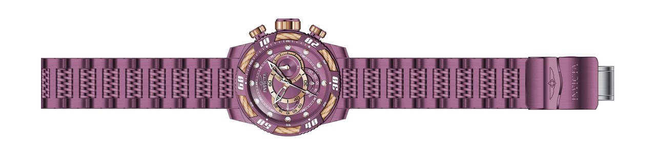 INVICTA Speedway Men 50mm Stainless Steel Purple Rose Gold+Purple dial VD54 Quartz , Band Material: Stainless Steel, Band Tone: Purple, Band Size [mm]: 24, Band Length [mm]: 190, Buckle Type: Fold over safety , Crown Type : Push, Case Material : Stainless Steel, Case Tone : Purple, Case Size (mm) : 50, Case Back : Solid, Material of Hands : Metal, Color of Hands : White,Silver, Crystal Type : Flame Fusion, Bezel Material : Stainless Steel,Cable, Dial Material : Metal, Dial Color : Rose Gold,Purple, Dial Pattern : Sun-ray Finish .Purchasing these parts and having a non-authorized repair center open your watch voids all manufacturing warranties. Invicta cannot guarantee the quality standards of an altered timepiece, the standard 3-year limited warranty on Invicta timepieces shall be invalid if the timepiece is serviced at any time by an unauthorized repair center. This includes battery replacements, which must be done at an Invicta authorized repair center in order to maintain the eligibility of the warranty. Please follow the link below to learn more about Invicta's warranty.https://cdn.invictawatch.com/www/files/invicta-warranty-2018.pdf