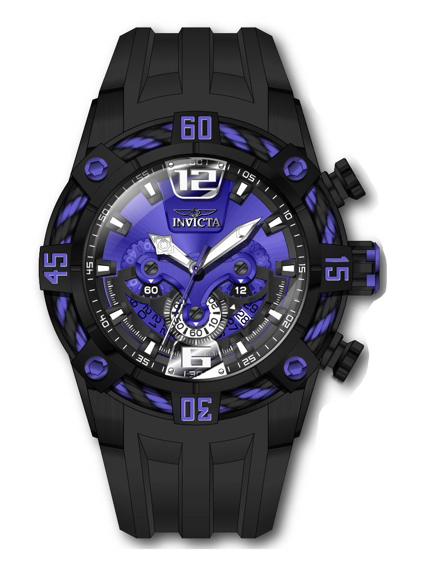 Band Material: Silicone, Band Tone: Black, Band Width: 32MM, Band Length: 200MM, Crown Type: Push, Case Material: Stainless Steel, Case Tone: Black, Case Size [mm]: 52, Case Back: Solid, Material of Hands: Metal, Color of Hands: Silver,Purple, Crystal Type: Flame Fusion, Bezel Material: Stainless Steel,Cable, Dial Material: Plastic, Dial Color: Purple, Dial Pattern: None .Purchasing these parts and having a non-authorized repair center open your watch voids all manufacturing warranties. Invicta cannot guarantee the quality standards of an altered timepiece, the standard 3-year limited warranty on Invicta timepieces shall be invalid if the timepiece is serviced at any time by an unauthorized repair center. This includes battery replacements, which must be done at an Invicta authorized repair center in order to maintain the eligibility of the warranty. Please follow the link below to learn more about Invicta's warranty.https://cdn.invictawatch.com/www/files/invicta-warranty-2018.pdf