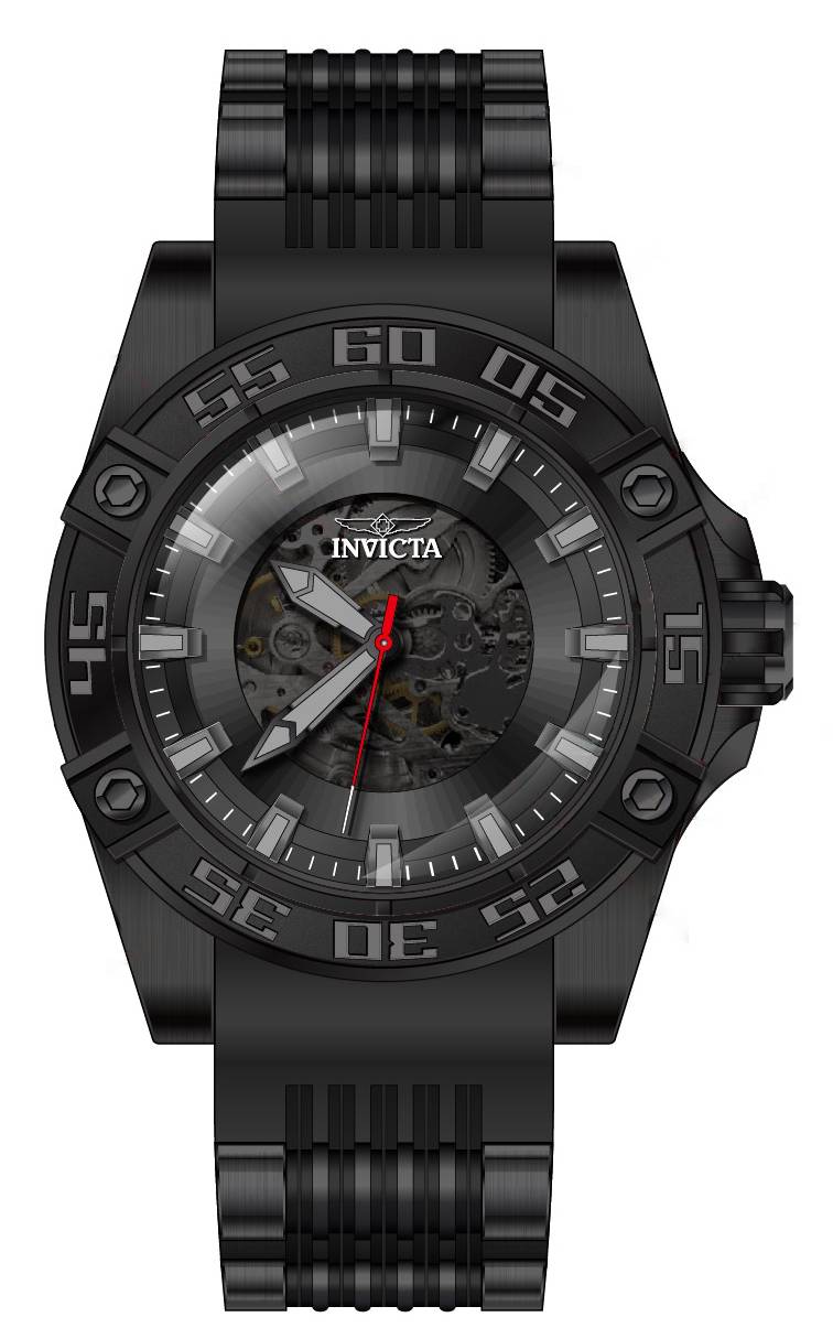 Band Material: Stainless Steel,Silicone, Band Tone: Black,Gunmetal, Band Width: 26MM, Band Length: 200MM, Crown Type: Push, Case Material: Stainless Steel, Case Tone: Black, Case Size [mm]: 52, Case Back: Exhibition, Material of Hands: Metal, Color of Hands: Red,Grey, Crystal Type: Flame Fusion, Bezel Material: Stainless Steel,Aluminum, Dial Material: Metal, Dial Color: Black, Dial Pattern: Sun-ray Finish .Purchasing these parts and having a non-authorized repair center open your watch voids all manufacturing warranties. Invicta cannot guarantee the quality standards of an altered timepiece, the standard 3-year limited warranty on Invicta timepieces shall be invalid if the timepiece is serviced at any time by an unauthorized repair center. This includes battery replacements, which must be done at an Invicta authorized repair center in order to maintain the eligibility of the warranty. Please follow the link below to learn more about Invicta's warranty.https://cdn.invictawatch.com/www/files/invicta-warranty-2018.pdf