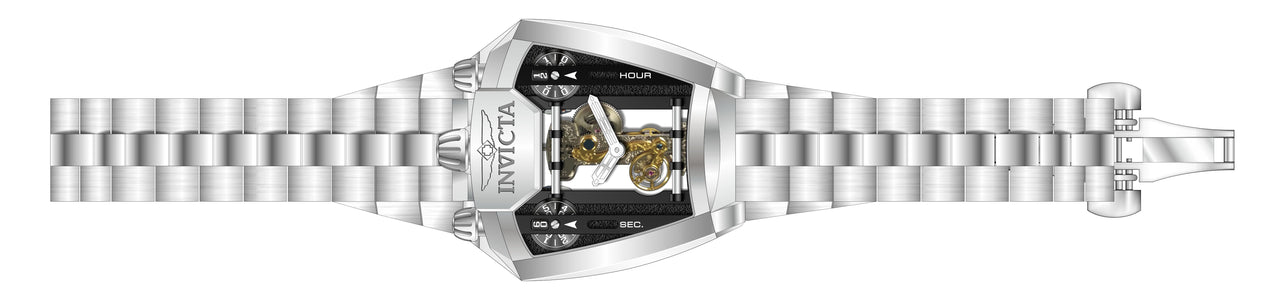 Band Material: Stainless Steel, Band Tone: Steel, Band Width: 33MM, Band Length: 225MM, Crown Type: Push, Case Material: Stainless Steel, Case Tone: Steel, Case Size [mm]: 58, Case Back: Exhibition, Material of Hands: Metal, Color of Hands: Silver,Luminous, Crystal Type: Flame Fusion, Bezel Material: Stainless Steel, Dial Material: Metal, Dial Color: Black, Dial Pattern: Skeleton Design .Purchasing these parts and having a non-authorized repair center open your watch voids all manufacturing warranties. Invicta cannot guarantee the quality standards of an altered timepiece, the standard 3-year limited warranty on Invicta timepieces shall be invalid if the timepiece is serviced at any time by an unauthorized repair center. This includes battery replacements, which must be done at an Invicta authorized repair center in order to maintain the eligibility of the warranty. Please follow the link below to learn more about Invicta's warranty.https://cdn.invictawatch.com/www/files/invicta-warranty-2018.pdf
