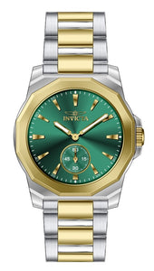 Band Material: Stainless Steel, Band Tone: Steel,Gold, Band Width: 22MM, Band Length: 180MM, Crown Type: Push, Case Material: Stainless Steel, Case Tone: Gold,Steel, Case Size [mm]: 42, Case Back: Solid, Material of Hands: Brass, Color of Hands: Gold,Luminous, Crystal Type: Mineral, Bezel Material: None, Dial Material: Brass, Dial Color: Green, Dial Pattern: Sun-ray Finish .Purchasing these parts and having a non-authorized repair center open your watch voids all manufacturing warranties. Invicta cannot guarantee the quality standards of an altered timepiece, the standard 3-year limited warranty on Invicta timepieces shall be invalid if the timepiece is serviced at any time by an unauthorized repair center. This includes battery replacements, which must be done at an Invicta authorized repair center in order to maintain the eligibility of the warranty. Please follow the link below to learn more about Invicta's warranty.https://cdn.invictawatch.com/www/files/invicta-warranty-2018.pdf
