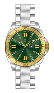 Band Material: Stainless Steel, Band Tone: Steel, Band Width: 22MM, Band Length: 182MM, Crown Type: Push, Case Material: Stainless Steel, Case Tone: Gold,Steel, Case Size [mm]: 46, Case Back: Solid, Material of Hands: Brass, Color of Hands: White,Gold, Crystal Type: Mineral, Bezel Material: None, Dial Material: Brass, Dial Color: Green, Dial Pattern: Sun-ray Finish .Purchasing these parts and having a non-authorized repair center open your watch voids all manufacturing warranties. Invicta cannot guarantee the quality standards of an altered timepiece, the standard 3-year limited warranty on Invicta timepieces shall be invalid if the timepiece is serviced at any time by an unauthorized repair center. This includes battery replacements, which must be done at an Invicta authorized repair center in order to maintain the eligibility of the warranty. Please follow the link below to learn more about Invicta's warranty.https://cdn.invictawatch.com/www/files/invicta-warranty-2018.pdf