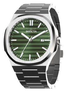 Band Material: Stainless Steel, Band Tone: Steel, Band Width: 24MM, Band Length: 200MM, Crown Type: Push, Case Material: Stainless Steel, Case Tone: Steel, Case Size [mm]: 43, Material of Hands: Metal, Color of Hands: Silver,Luminous, Crystal Type: Mineral, Bezel Material: Stainless Steel, Dial Material: Metal, Dial Color: Green, Dial Pattern: Sun-ray Finish .Purchasing these parts and having a non-authorized repair center open your watch voids all manufacturing warranties. Invicta cannot guarantee the quality standards of an altered timepiece, the standard 3-year limited warranty on Invicta timepieces shall be invalid if the timepiece is serviced at any time by an unauthorized repair center. This includes battery replacements, which must be done at an Invicta authorized repair center in order to maintain the eligibility of the warranty. Please follow the link below to learn more about Invicta's warranty.https://cdn.invictawatch.com/www/files/invicta-warranty-2018.pdf