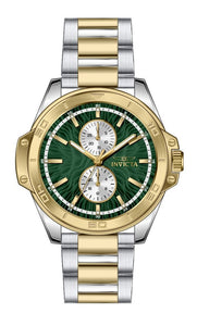 Band Material: Stainless Steel, Band Tone: Steel,Gold, Band Width: 22MM, Band Length: 181MM, Crown Type: Push, Case Material: Stainless Steel, Case Tone: Gold,Steel, Case Size [mm]: 44.5, Case Back: Solid, Material of Hands: Brass, Color of Hands: Gold,Luminous, Crystal Type: Mineral, Bezel Material: None, Dial Material: Brass, Dial Color: Green, Dial Pattern: Embossed pattern .Purchasing these parts and having a non-authorized repair center open your watch voids all manufacturing warranties. Invicta cannot guarantee the quality standards of an altered timepiece, the standard 3-year limited warranty on Invicta timepieces shall be invalid if the timepiece is serviced at any time by an unauthorized repair center. This includes battery replacements, which must be done at an Invicta authorized repair center in order to maintain the eligibility of the warranty. Please follow the link below to learn more about Invicta's warranty.https://cdn.invictawatch.com/www/files/invicta-warranty-2018.pdf