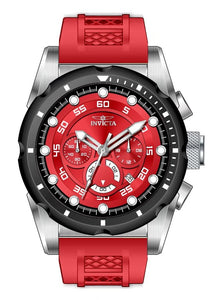 Band Material: Silicone, Band Tone: Light Red, Band Width: 26MM, Band Length: 215MM, Crown Type: Push, Case Material: Stainless Steel, Case Tone: Black,Steel, Case Size [mm]: 50, Case Back: Solid, Material of Hands: Metal, Color of Hands: Silver,Luminous, Crystal Type: Mineral, Bezel Material: Stainless Steel, Dial Material: Metal, Dial Color: Light Red, Dial Pattern: Sun-ray Finish .Purchasing these parts and having a non-authorized repair center open your watch voids all manufacturing warranties. Invicta cannot guarantee the quality standards of an altered timepiece, the standard 3-year limited warranty on Invicta timepieces shall be invalid if the timepiece is serviced at any time by an unauthorized repair center. This includes battery replacements, which must be done at an Invicta authorized repair center in order to maintain the eligibility of the warranty. Please follow the link below to learn more about Invicta's warranty.https://cdn.invictawatch.com/www/files/invicta-warranty-2018.pdf