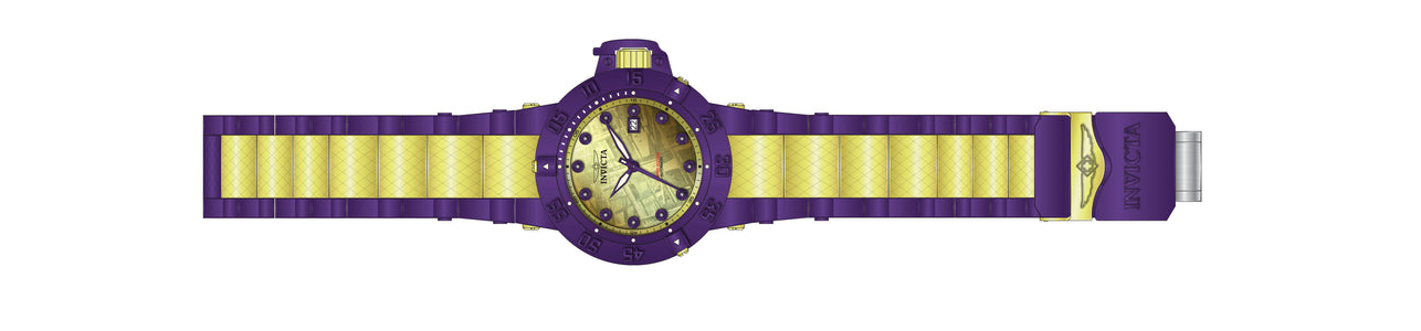 INVICTA Subaqua Men 50mm Stainless Steel Gold + Purple Gold+Purple dial NH35A Automatic , Band Material: Stainless Steel, Band Tone: Gold,Purple, Band Size [mm]: 29, Band Length [mm]: 210, Buckle Type: Fold over safety , Crown Type : Screw Down, Case Material : Stainless Steel, Case Tone : Gold,Purple, Case Size (mm) : 50, Case Back : Exhibition, Material of Hands : Metal, Color of Hands : Purple,Luminous, Crystal Type : Flame Fusion, Bezel Material : Stainless Steel, Dial Material : Metal,Meteorite, Dial Color : Gold,Purple, Dial Pattern : None .Purchasing these parts and having a non-authorized repair center open your watch voids all manufacturing warranties. Invicta cannot guarantee the quality standards of an altered timepiece, the standard 3-year limited warranty on Invicta timepieces shall be invalid if the timepiece is serviced at any time by an unauthorized repair center. This includes battery replacements, which must be done at an Invicta authorized repair center in order to maintain the eligibility of the warranty. Please follow the link below to learn more about Invicta's warranty.https://cdn.invictawatch.com/www/files/invicta-warranty-2018.pdf