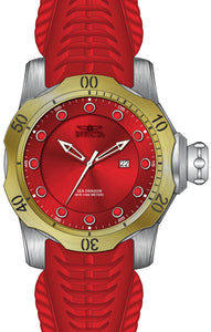 Band Material: Silicone, Band Tone: Red, Band Width: 26MM, Band Length: 210MM, Crown Type: Screw Down, Case Material: Stainless Steel, Case Tone: Gold,Steel, Case Size [mm]: 53.7, Case Back: Exhibition, Material of Hands: Metal, Color of Hands: Red,Luminous, Crystal Type: Mineral, Bezel Material: Stainless Steel, Dial Material: Metal, Dial Color: Red, Dial Pattern: Sun-ray Finish .Purchasing these parts and having a non-authorized repair center open your watch voids all manufacturing warranties. Invicta cannot guarantee the quality standards of an altered timepiece, the standard 3-year limited warranty on Invicta timepieces shall be invalid if the timepiece is serviced at any time by an unauthorized repair center. This includes battery replacements, which must be done at an Invicta authorized repair center in order to maintain the eligibility of the warranty. Please follow the link below to learn more about Invicta's warranty.https://cdn.invictawatch.com/www/files/invicta-warranty-2018.pdf