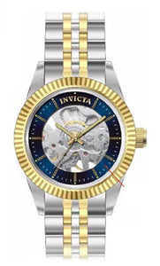 INVICTA Vintage Lady 36mm Stainless Steel Steel Blue dial JSD-006SY Mechanical , Band Material: Stainless Steel, Band Tone: Steel,Gold, Band Size [mm]: 18, Band Length [mm]: 210, Buckle Type: Fold over safety , Crown Type : Push, Case Material : Stainless Steel, Case Tone : Steel, Case Size (mm) : 36, Case Back : Exhibition, Material of Hands : Metal, Color of Hands : Gold, Crystal Type : Flame Fusion, Bezel Material : Stainless Steel, Dial Material : Metal, Dial Color : Blue .Purchasing these parts and having a non-authorized repair center open your watch voids all manufacturing warranties. Invicta cannot guarantee the quality standards of an altered timepiece, the standard 3-year limited warranty on Invicta timepieces shall be invalid if the timepiece is serviced at any time by an unauthorized repair center. This includes battery replacements, which must be done at an Invicta authorized repair center in order to maintain the eligibility of the warranty. Please follow the link below to learn more about Invicta's warranty.https://cdn.invictawatch.com/www/files/invicta-warranty-2018.pdf