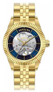 INVICTA Vintage Lady 36mm Stainless Steel Gold Blue dial JSD-006SY Mechanical , Band Material: Stainless Steel, Band Tone: Gold, Band Size [mm]: 18, Band Length [mm]: 210, Buckle Type: Fold over safety , Crown Type : Push, Case Material : Stainless Steel, Case Tone : Gold, Case Size (mm) : 36, Case Back : Exhibition, Material of Hands : Metal, Color of Hands : Gold, Crystal Type : Flame Fusion, Bezel Material : Stainless Steel, Dial Material : Metal, Dial Color : Blue .Purchasing these parts and having a non-authorized repair center open your watch voids all manufacturing warranties. Invicta cannot guarantee the quality standards of an altered timepiece, the standard 3-year limited warranty on Invicta timepieces shall be invalid if the timepiece is serviced at any time by an unauthorized repair center. This includes battery replacements, which must be done at an Invicta authorized repair center in order to maintain the eligibility of the warranty. Please follow the link below to learn more about Invicta's warranty.https://cdn.invictawatch.com/www/files/invicta-warranty-2018.pdf