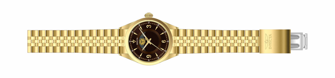 INVICTA Vintage Men 43mm Stainless Steel Gold Brown dial PC39 Quartz , Band Material: Stainless Steel, Band Tone: Gold, Band Size [mm]: 22, Band Length [mm]: 215, Buckle Type: Fold over , Crown Type : Push, Case Material : Stainless Steel, Case Tone : Gold, Case Size (mm) : 43, Case Back : Solid, Material of Hands : Metal, Color of Hands : Gold,Luminous, Crystal Type : Flame Fusion, Bezel Material : Stainless Steel, Dial Material : Metal, Dial Color : Brown, Dial Pattern : Textured Pattern .Purchasing these parts and having a non-authorized repair center open your watch voids all manufacturing warranties. Invicta cannot guarantee the quality standards of an altered timepiece, the standard 3-year limited warranty on Invicta timepieces shall be invalid if the timepiece is serviced at any time by an unauthorized repair center. This includes battery replacements, which must be done at an Invicta authorized repair center in order to maintain the eligibility of the warranty. Please follow the link below to learn more about Invicta's warranty.https://cdn.invictawatch.com/www/files/invicta-warranty-2018.pdf