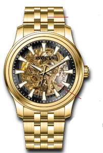 INVICTA Vintage Men 42mm Stainless Steel Gold Black dial JSD-006SJ Mechanical , Band Material: Stainless Steel, Band Tone: Gold, Band Size [mm]: 22, Band Length [mm]: 185, Buckle Type: Fold over safety , Crown Type : Push, Case Material : Stainless Steel, Case Tone : Gold, Case Size (mm) : 42, Case Back : Exhibition, Material of Hands : Metal, Color of Hands : White,Gold, Crystal Type : Flame Fusion, Bezel Material : Stainless Steel, Dial Material : Metal, Dial Color : Black, Dial Pattern : Sun-ray Finish .Purchasing these parts and having a non-authorized repair center open your watch voids all manufacturing warranties. Invicta cannot guarantee the quality standards of an altered timepiece, the standard 3-year limited warranty on Invicta timepieces shall be invalid if the timepiece is serviced at any time by an unauthorized repair center. This includes battery replacements, which must be done at an Invicta authorized repair center in order to maintain the eligibility of the warranty. Please follow the link below to learn more about Invicta's warranty.https://cdn.invictawatch.com/www/files/invicta-warranty-2018.pdf