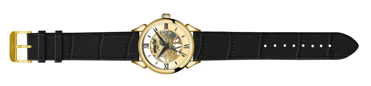 INVICTA Vintage Men 42mm Stainless Steel Gold Gold dial JSD-006SJ Mechanical , Band Material: Leather, Band Tone: Black, Band Size [mm]: 22, Band Length [mm]: 210, Buckle Type: Buckle , Crown Type : Push, Case Material : Stainless Steel, Case Tone : Gold, Case Size (mm) : 42, Case Back : Exhibition, Material of Hands : Metal, Color of Hands : Black, Crystal Type : Flame Fusion, Bezel Material : Stainless Steel, Dial Material : Metal, Dial Color : Gold .Purchasing these parts and having a non-authorized repair center open your watch voids all manufacturing warranties. Invicta cannot guarantee the quality standards of an altered timepiece, the standard 3-year limited warranty on Invicta timepieces shall be invalid if the timepiece is serviced at any time by an unauthorized repair center. This includes battery replacements, which must be done at an Invicta authorized repair center in order to maintain the eligibility of the warranty. Please follow the link below to learn more about Invicta's warranty.https://cdn.invictawatch.com/www/files/invicta-warranty-2018.pdf