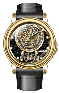Band Material: Leather, Band Tone: Black, Band Width: 24MM, Band Length: 210MM, Crown Type: Screw Down, Case Material: Stainless Steel, Case Tone: Gold, Case Size [mm]: 46, Case Back: Solid, Material of Hands: Metal, Color of Hands: White,Gold, Crystal Type: Flame Fusion, Bezel Material: Stainless Steel, Dial Material: Metal, Dial Color: Black .Purchasing these parts and having a non-authorized repair center open your watch voids all manufacturing warranties. Invicta cannot guarantee the quality standards of an altered timepiece, the standard 3-year limited warranty on Invicta timepieces shall be invalid if the timepiece is serviced at any time by an unauthorized repair center. This includes battery replacements, which must be done at an Invicta authorized repair center in order to maintain the eligibility of the warranty. Please follow the link below to learn more about Invicta's warranty.https://cdn.invictawatch.com/www/files/invicta-warranty-2018.pdf