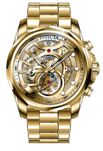 Band Material: Stainless Steel, Band Tone: Gold, Band Width: 24MM, Band Length: 190MM, Crown Type: Push, Case Material: Stainless Steel, Case Tone: Gold, Case Size [mm]: 46, Case Back: Solid, Material of Hands: Metal, Color of Hands: White,Gold, Crystal Type: Flame Fusion, Bezel Material: Stainless Steel, Dial Material: Metal, Dial Color: Gold .Purchasing these parts and having a non-authorized repair center open your watch voids all manufacturing warranties. Invicta cannot guarantee the quality standards of an altered timepiece, the standard 3-year limited warranty on Invicta timepieces shall be invalid if the timepiece is serviced at any time by an unauthorized repair center. This includes battery replacements, which must be done at an Invicta authorized repair center in order to maintain the eligibility of the warranty. Please follow the link below to learn more about Invicta's warranty.https://cdn.invictawatch.com/www/files/invicta-warranty-2018.pdf