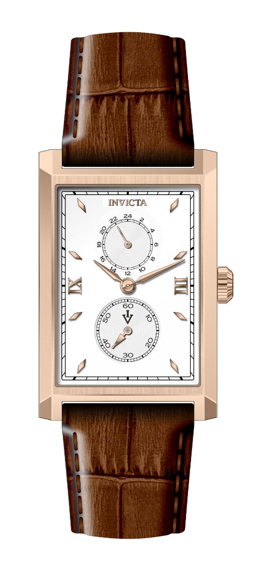 Band Material: Leather, Band Tone: Light Brown, Band Width: 22MM, Band Length: 225MM, Crown Type: Push, Case Material: Stainless Steel, Case Tone: Rose Gold, Case Size [mm]: 30, Crystal Type: Flame Fusion, Dial Material: Brass, Dial Color: White .Purchasing these parts and having a non-authorized repair center open your watch voids all manufacturing warranties. Invicta cannot guarantee the quality standards of an altered timepiece, the standard 3-year limited warranty on Invicta timepieces shall be invalid if the timepiece is serviced at any time by an unauthorized repair center. This includes battery replacements, which must be done at an Invicta authorized repair center in order to maintain the eligibility of the warranty. Please follow the link below to learn more about Invicta's warranty.https://cdn.invictawatch.com/www/files/invicta-warranty-2018.pdf