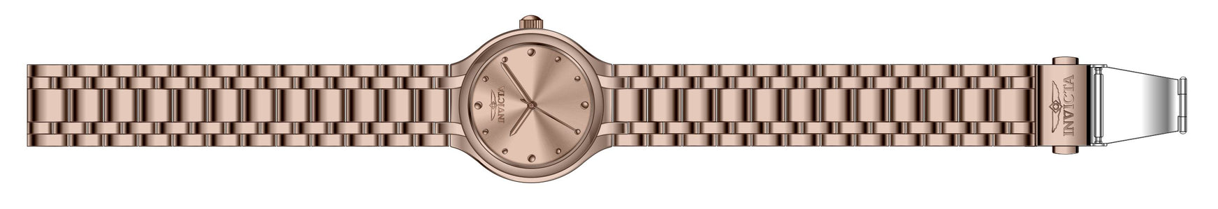 Band Material: Stainless Steel, Band Tone: Rose Gold, Band Width: 16MM, Band Length: 171MM, Crown Type: Push, Case Material: Stainless Steel, Case Tone: Rose Gold, Case Size [mm]: 32, Color of Hands: Rose Gold, Crystal Type: Mineral, Bezel Material: None, Dial Material: Brass, Dial Color: Rose Gold .Purchasing these parts and having a non-authorized repair center open your watch voids all manufacturing warranties. Invicta cannot guarantee the quality standards of an altered timepiece, the standard 3-year limited warranty on Invicta timepieces shall be invalid if the timepiece is serviced at any time by an unauthorized repair center. This includes battery replacements, which must be done at an Invicta authorized repair center in order to maintain the eligibility of the warranty. Please follow the link below to learn more about Invicta's warranty.https://cdn.invictawatch.com/www/files/invicta-warranty-2018.pdf
