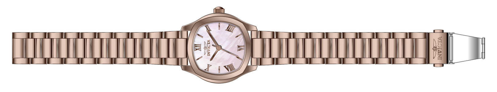 Band Material: Stainless Steel, Band Tone: Rose Gold, Band Width: 16MM, Band Length: 168MM, Crown Type: Push, Case Material: Stainless Steel, Case Tone: Rose Gold, Case Size [mm]: 32.5, Color of Hands: Rose Gold, Crystal Type: Mineral, Bezel Material: None, Dial Material: Mother of Pearl, Dial Color: Pink .Purchasing these parts and having a non-authorized repair center open your watch voids all manufacturing warranties. Invicta cannot guarantee the quality standards of an altered timepiece, the standard 3-year limited warranty on Invicta timepieces shall be invalid if the timepiece is serviced at any time by an unauthorized repair center. This includes battery replacements, which must be done at an Invicta authorized repair center in order to maintain the eligibility of the warranty. Please follow the link below to learn more about Invicta's warranty.https://cdn.invictawatch.com/www/files/invicta-warranty-2018.pdf